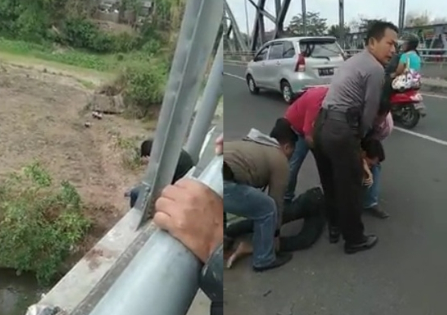 “Anggota kami sekitar pukul 09.30 WIB menerima laporan adanya pemuda yang mencoba bunuh diri. Setelah berada di lokasi, ternyata benar ada seorang pemuda yang duduk di sisi jembatan, menghadap ke sungai. Sempat ditanya oleh petugas, tapi diam saja, akhirnya diangkat ke atas,” terang Sapto, Selasa (23/10/2018).