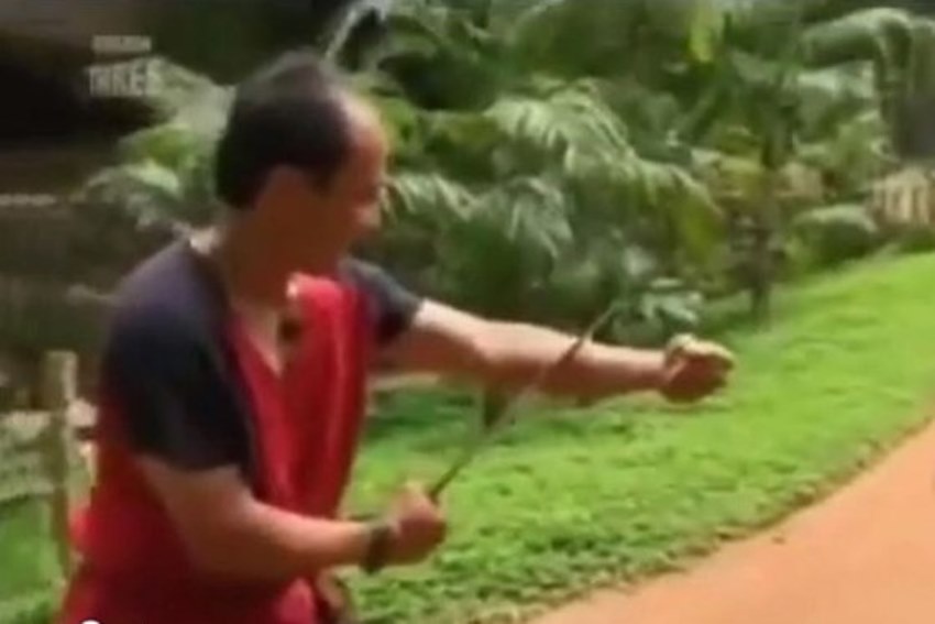 Dalam video yang beredar di Facebook tampak seorang pria sedang menunjukkan peahliannya dalam hal ilmu bela diri.