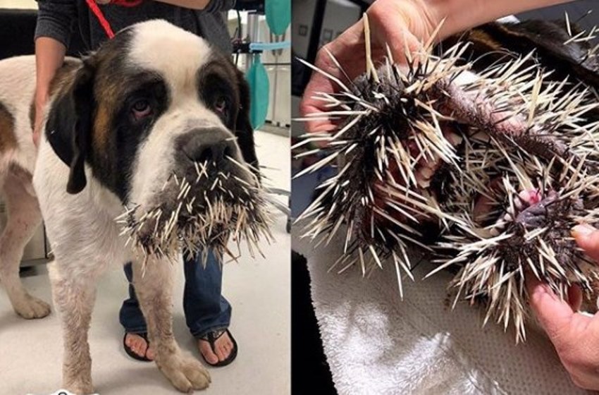 Duri yang menyakitkan itu didapat oleh anjing tersebut setelah ia mencoba berteman dengan landak.