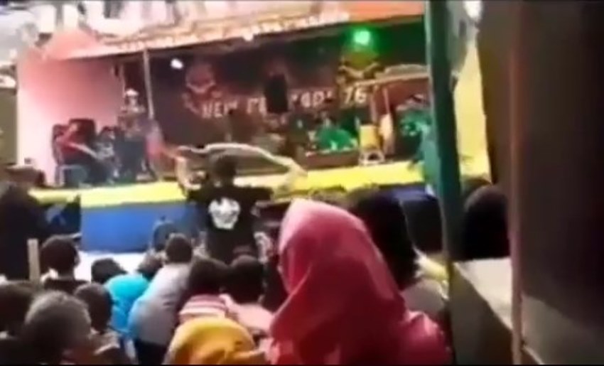 Ya, beberapa saat setelah pecut dilecutkan, seketika itu pula panggung pertunjukkan tersebut roboh. Robohnya panggung tersebut membuat para penonton dan orang-orang yang ada di atas panggung heboh.