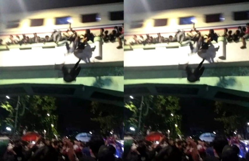 Entah karena dorongan yang terlalu kuat atau bagaimana, tapi tiba-tiba saja sejumlah penonton langsung jatuh.