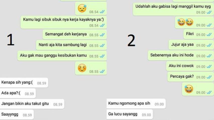Fikri pun tak percaya dan hanya menyebut kalau kekasihnya itu sedang bercanda. Namun pria itu tetap meyakinkan kalau ia bukan seorang wanita dan memang pria sampai mengirim foto.