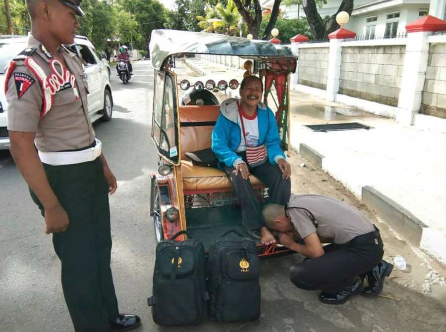 Pemandangan siswa SPN Polda Sulsel cium kaki ayahnya yang sedang mangkal menunggu penumpang itu pun dikomentari banyak netizen.