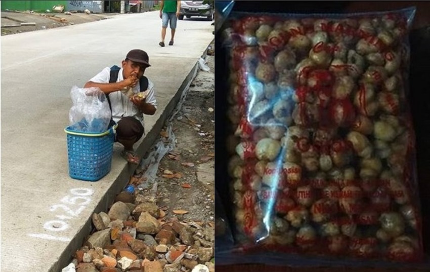 Bapak ini lebih memilih untuk berjualan jagung plastik ketimbang harus mengemis atau meminta-minta demi mendapat uang.