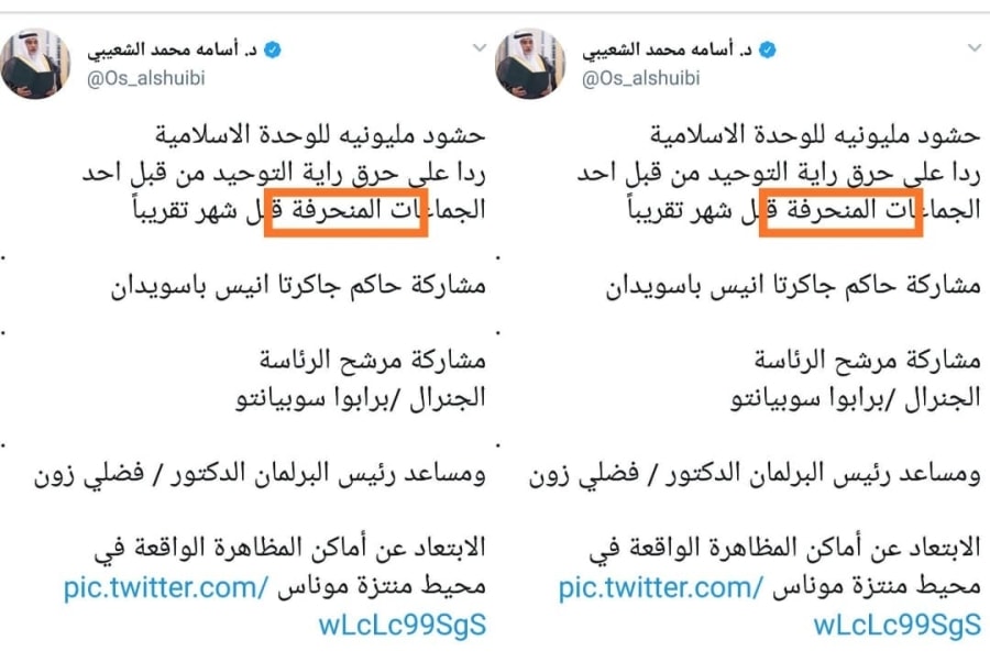 Belakangan sebagaimana dihimpun, cuitan Osamah Al-Suaib @Os_alshuibi sudah diganti dengan cuitan berisi imbauan agar wisatawan Arab Saudi menghindari kawasan Monas.