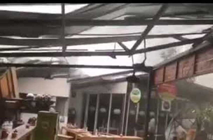 Di video itu tampak atap tempat makan itu terbang dihempas oleh angin kencang yang disertai hujan.