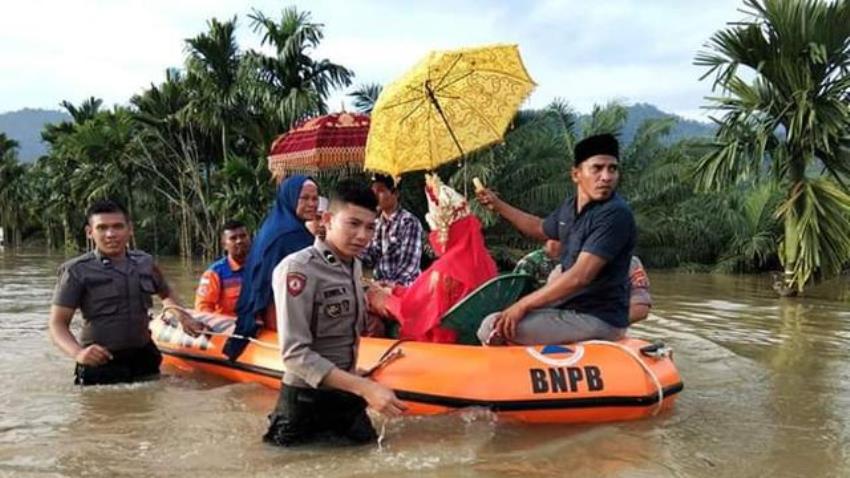 Akad nikah pasangan ini sendiri digelar pada Jumat (14/12) lalu. Saat hendak melangsungkan upacara ‘intat dara baroe’, banjir menggenangi tiga kecamatan di Kabupaten Aceh Selatan, termasuk kecamatan tempat berlangsungnya pernikahan.
