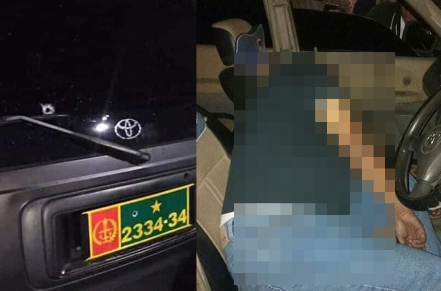 Penumpang yang ada di belakang kemudian mengacungkan senjata ke arah mobil dan terdengar dua kali suara tembakan.