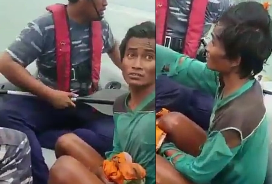 Dalam video tersebut, anggota TNI AL yang menggunakan sekoci menghampiri seorang warga yang berada di atas dahan pohon mati di tepi pantai Pulau Panjang.