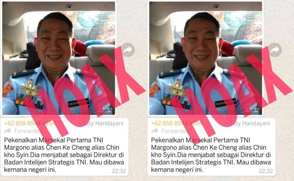 Sebagaimana dihimpun, informasi yang seolah-olah menyebutkan Marsma Margono bukan Warga Negara Indonesia adalah hoax alias berita bohong.