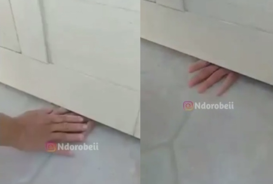 Ketika berkomunikasi dengan rekannya, hanya terdengar suara dan terlihat hanya jemarinya saja melalui kolong bawah pintu.