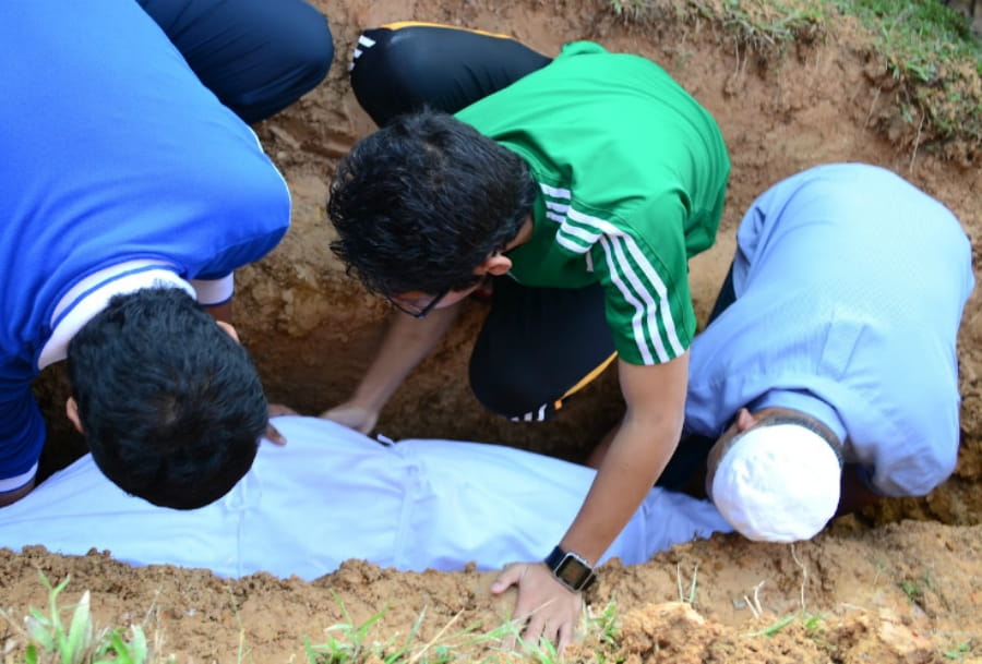 Oleh keluarganya, pensiunan guru itu dibawa ke Desa Pasi Jambu, Kecamatan Kaway XVI, Aceh Barat. Warga yang mengetahui kematian Rasyidin pun ramai-ramai melayat.
