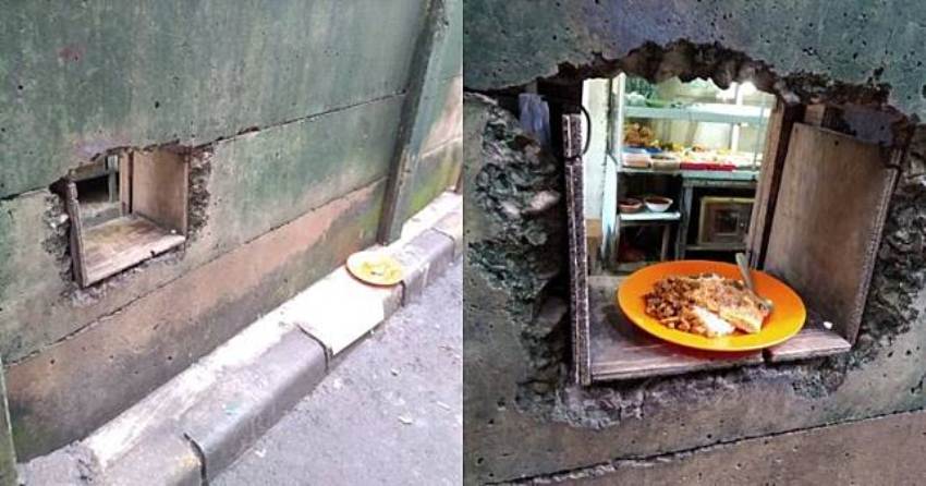 Penampakan warung itu pun mirip dengan layanan restoran drive thru di restoran cepat saji. Lewat lubang itu semua transaksi jual beli makanan dilakukan.