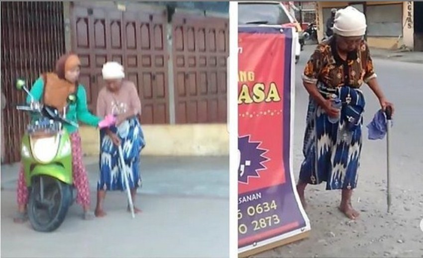 Hal itulah yang terlihat dalam video viral berikut ini. Seorang ibu yang sudah tua, bahkan untuk berjalanpun memegang tongkat dijadikan pengemis oleh anaknya.