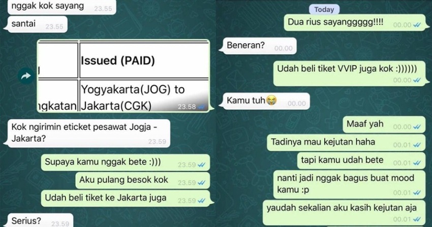 Penerbangan itu dijadwalkan untuk esok hari. Ternyata pasangan yang belum jadian ini dipisahkan jarak, Yogyakarta-Jakarta.