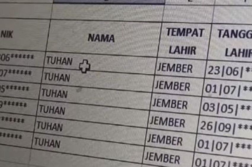 Disana terdapat orang dengan nama Tuhan yang terdaftar sebagai pemilih di Kabupaten Jember. Nggak tanggung-tanggung, ada enam orang dengan nama Tuhan yang terdaftar di kabupaten tersebut.