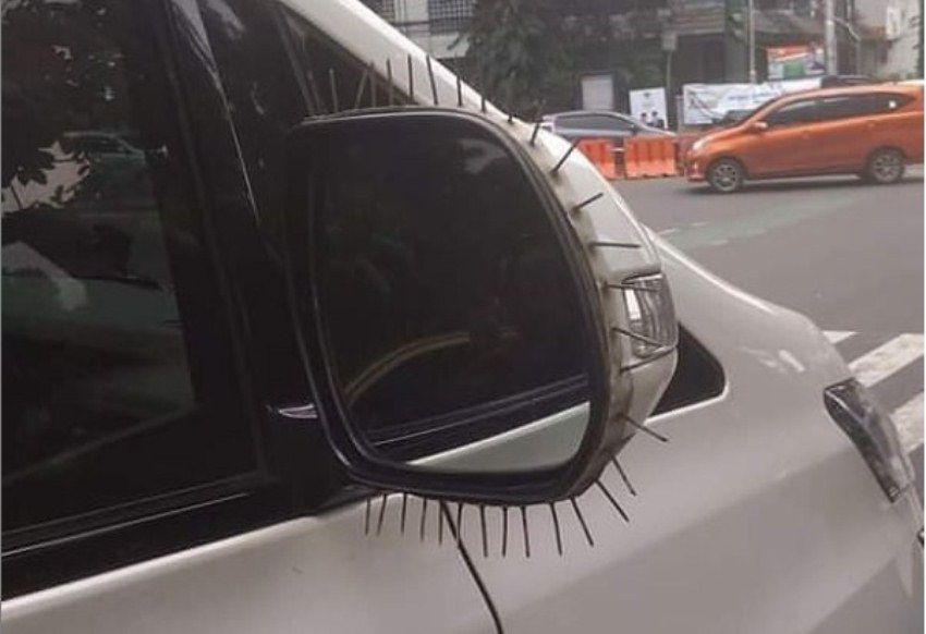 Foto pelindung spion yang terbuat dari paku tajam dan berkarat itu pun menjadi viral dan mendapat beragam komentar dari netizen.