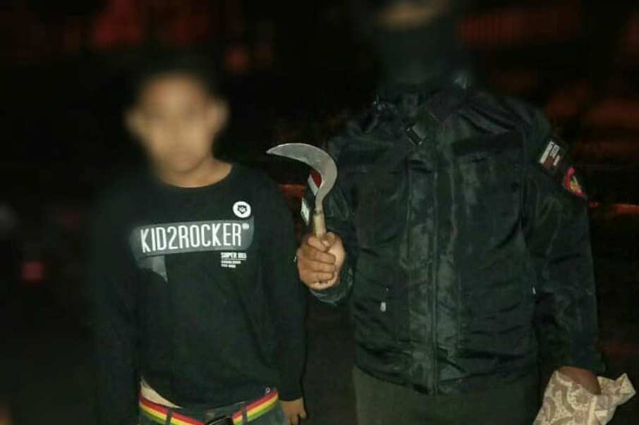 Dari salah satu remaja yang diamankan di Terminal Indihiang, aparat berhasil menyita sebuah senjata tajam jenis celurit dari pemuda berinisial Sn (18).