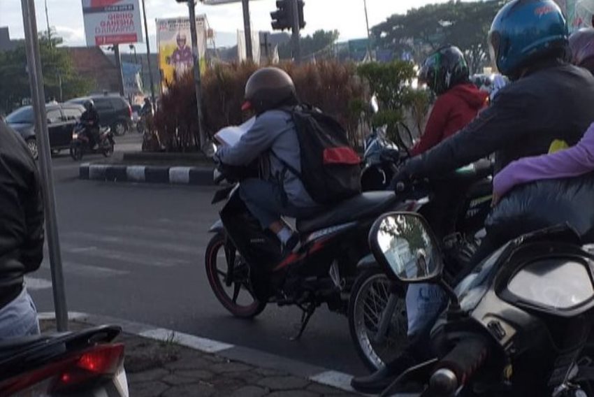 Potretnya yang sedang belajar pun mendadak viral di media sosial. Bagaimana tidak, pelajar itu tertangkap kamera menghabiskan waktunya saat menunggu lampu merah di perempatan Soetta-Kircon dengan membaca buku.