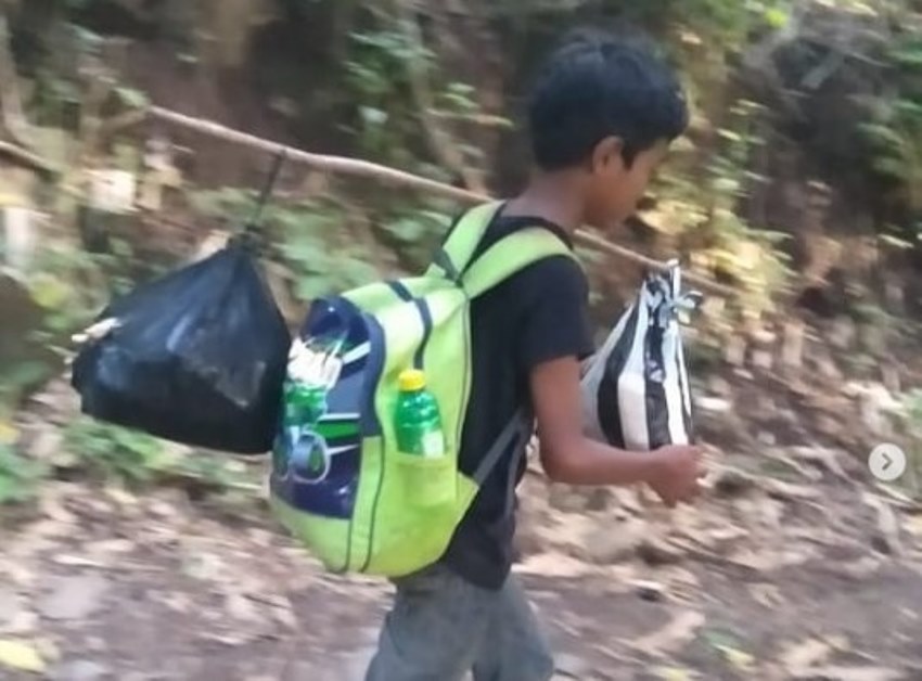 Selama menempuh perjalanan, aksi Marianta ini pun direkam oleh relawan kemanusiaan perseorangan yang ikut membantu Marianta.