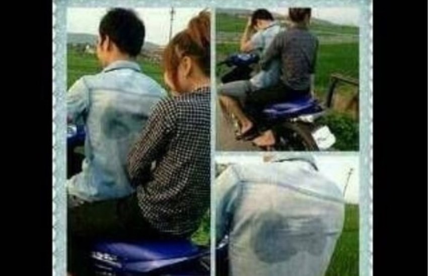 Dalam foto yang beredar di media sosial itu terlihat seorang wanita yang mengenakan kemeja hitam dengan motif kotak-kotak putih terlihat menaiki sebuah motor bersama kekasihnya.