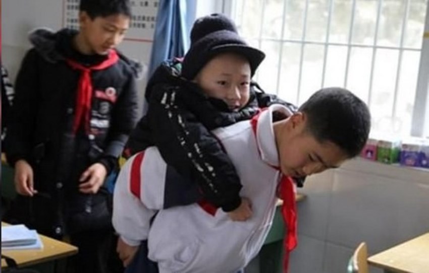 Dan hal itulah yang dilakukan oleh bocah berusia 12 tahun berna,a Xu Bingyang. Sudah 6 tahun belakangan ia rela menggendong teman sekelasnya yang lumpuh setiap hari.