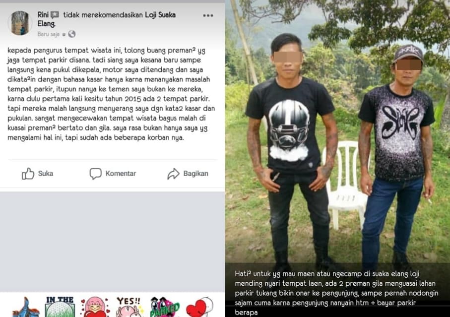 Bukan Rini saja yang mengalami kejadian serupa, seorang netizen dengan akun Rafly Hermawan mengaku dirinya pernah ditodong golok karena bercanda nego parkiran di Loji Suaka Elang.
