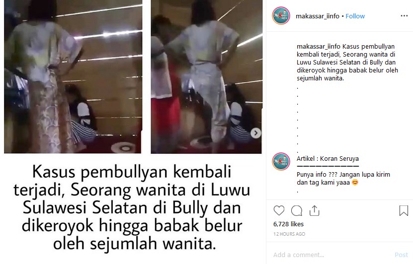 Pelajar malang yang diketahui bernama Eva berasal dari To’bakkun, Desa Salutubu, Kecamatan Walenrang Utara, Kabupaten Luwu itu menangis dan mengerang kesakitan usai ditendang, dipukul dan dicakar oleh kedua temannya.