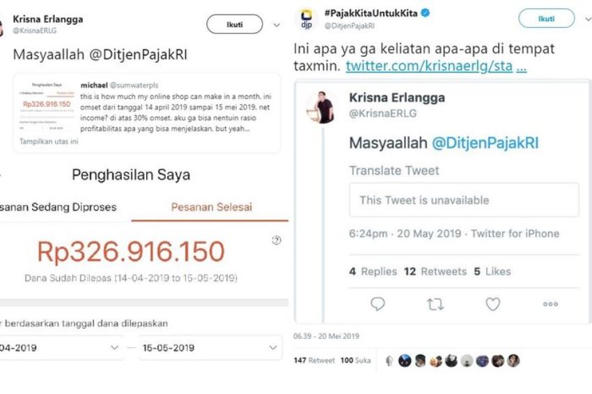 Anehnya, ketika melakukan pengecekan ke cuitan yang dibagikan oleh @KrisnaERLG, Taxmin mengaku pihaknya tidak bisa melihat tweet tersebut.
