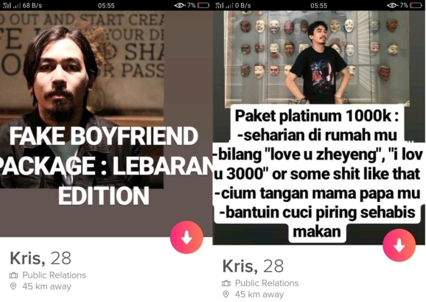“Fake boyfriend package: Lebaran Edition”, tulis Kris.