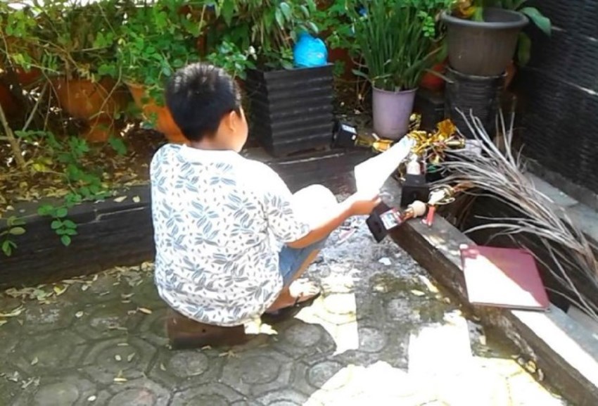 Dalam video yang beredar tampak bocah laki-laki itu membakar sejumlah piagam dan piala penghargaan miliknya.