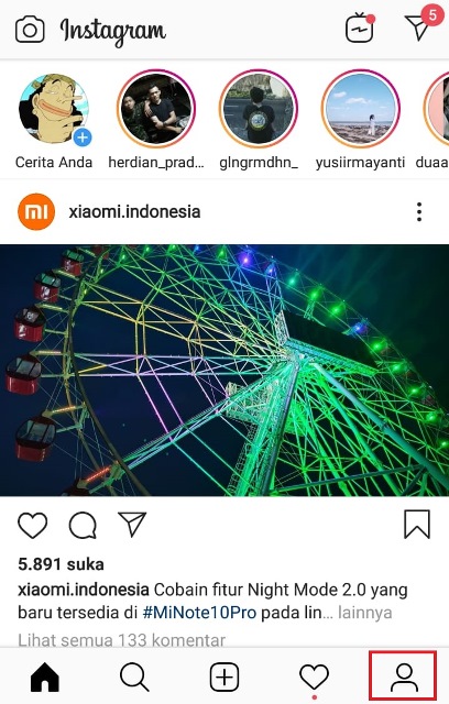 2. Selanjutnya, klik pada menu Akun atau Profil yang terletak di pojok kanan bawah seperti pada gambar berikut.