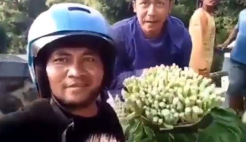 Beberapa saat kemudian, kembali beredar sebuah video yang memperlihatkan aksi pedagang yang bagi-bagi sayuran secara gratis.