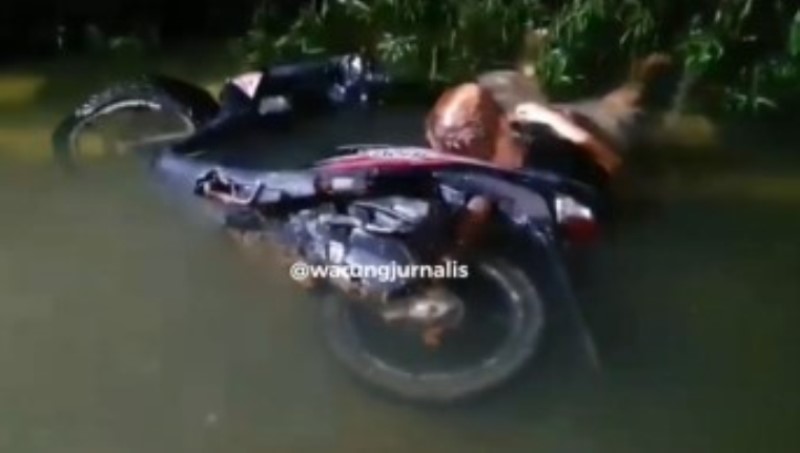 Namun yang anehnya, pria tersebut pergi tanpa membawa motornya yang masih tergenang di dalam air banjir.