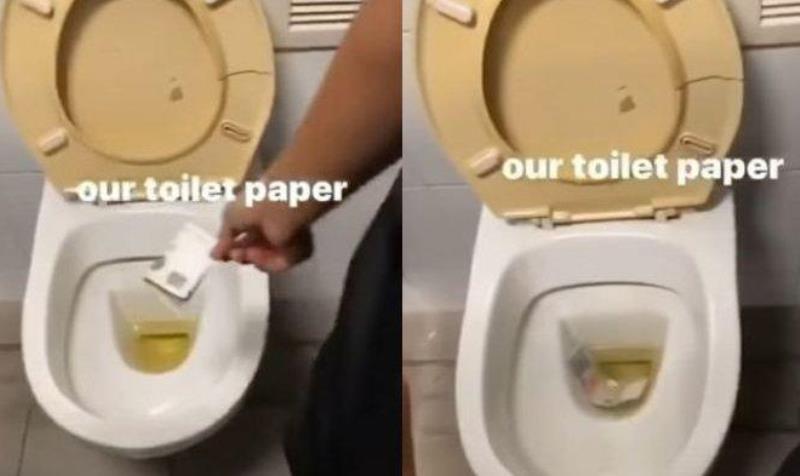 Kemudian dalam video lain, dua orang siswa tampak membuang selembar uang kertas pecahan 50 dollar Singapura atau setara dengan Rp 500 ribu ke dalam lubang toilet.