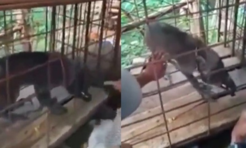 Seorang pria yang berada di depan kandang terdengar membacakan lantunan ayat suci Al-Quran. Kemudian, pria tersebut juga tampak seperti komat-kamit sembari memegang kain.
