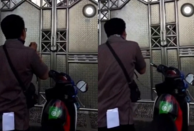 Dalam video yang beredar, terlihat seorang pria yang mengenakan kemeja berwarna abu-abu tengah berdiri di depan pagar rumah seorang warga.