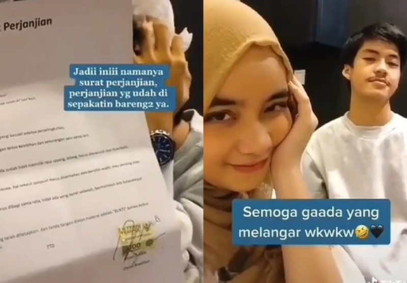 Namun lain halnya dengan pasangan yang satu ini. Tidak hanya sekedar ucapan, namun pasangan ini buat surat perjanjian yang dilengkapi dengan materai 6000 saat hendak berpacaran.