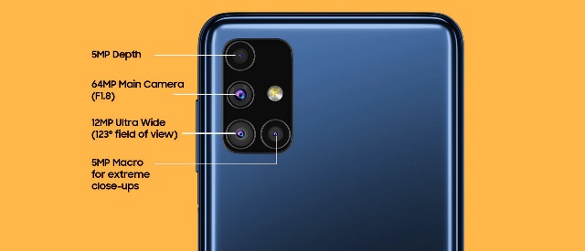 Bedanya, Galaxy M51 dianugerahi konfigurasi empat kamera belakang yang terdiri dari sensor utama 64 MP Sony IMX682, ultrawide 12 MP, macro 5 MP dan sensor kedalaman alias penghasil efek bokeh 5 MP.