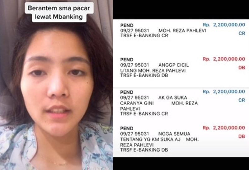 Tiba-tiba sang pacar pun mentrasnfer-nya uang, ia mengetahuinya karena dilihat dari mutasi rekening.