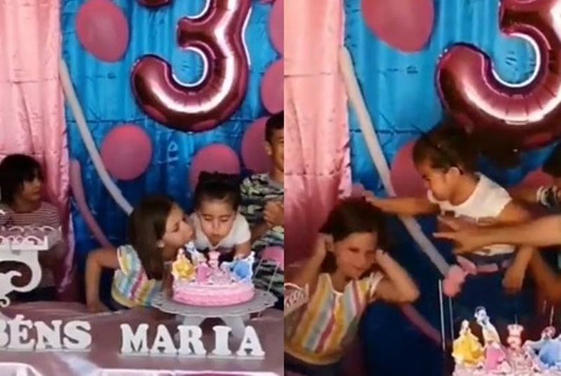 Dalam video yang beredar, terlihat mulanya seorang bocah berbaju putih hendak meniup lilin di hari ulang tahunnya yang ke-3.