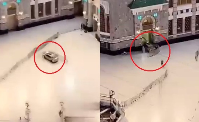 Dalam video yang diunggah oleh akun Twitter @HaramainInfo, terlihat sebuah mobil melaju dengan kecepatan tinggi menerobos pembatas.