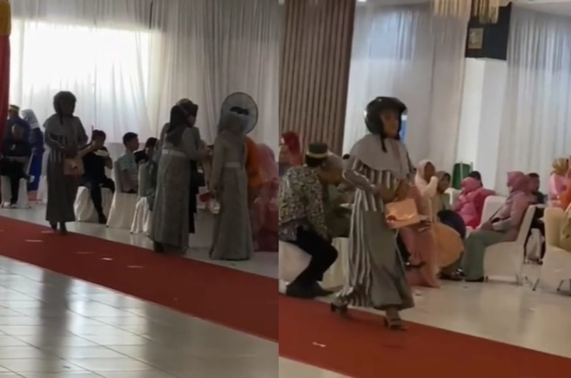 Bahkan ia pun tampak segera menuju tamu undangan lain sambil tertawa. Video emak-emak tak sadar pakai helm ke kondangan ini pun menjadi viral.