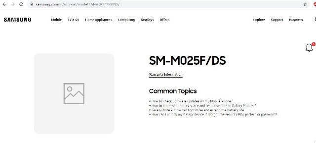 Nah, sekarang perangkat dengan nomor model yang sama, yaitu SM-M025F/DS dilaporkan telah terdaftar di halaman dukungan situs resmi Samsung India. Kemunculannya di sana mengisyaratkan bahwa peluncuran dari Galaxy M02 sudah semakin dekat.