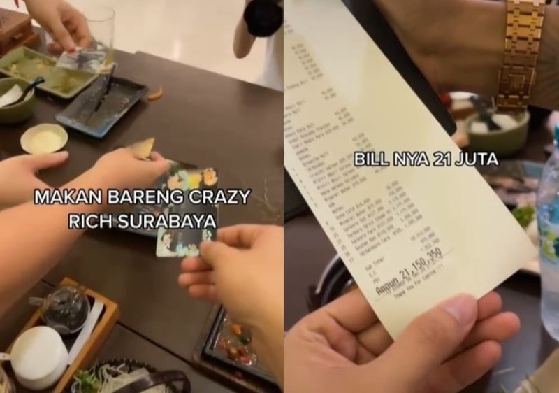 “Makan bareng Crazy Rich Surabaya. Bill-nya 21 juta,” tulis dalam video.