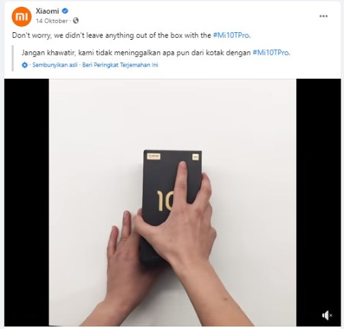 “Jangan khawatir, kami tidak meninggalkan apa pun dari kotak dengan #Mi10TPro”, tulis Xiaomi dalam video unggahanya itu.