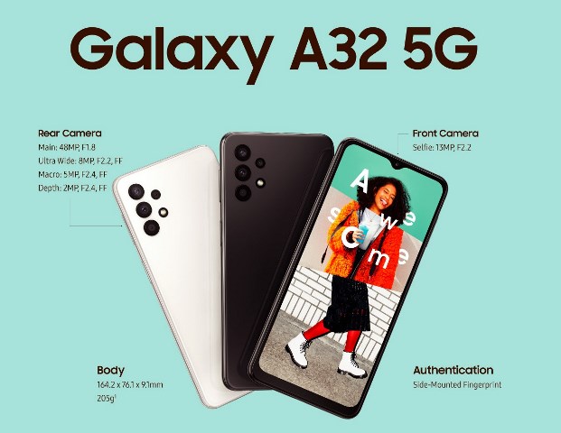 Samsung Galaxy A32 5G hadir dalam empat varian warna yakni Awesome Black, Awesome White, Awesome Blue, dan Awesome Violet.