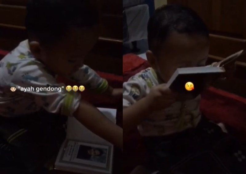 Dalam video tersebut diperlihatkan momen ketika si anak yang masih balita sangat merindukan mendiang ayahnya yang sudah wafat.