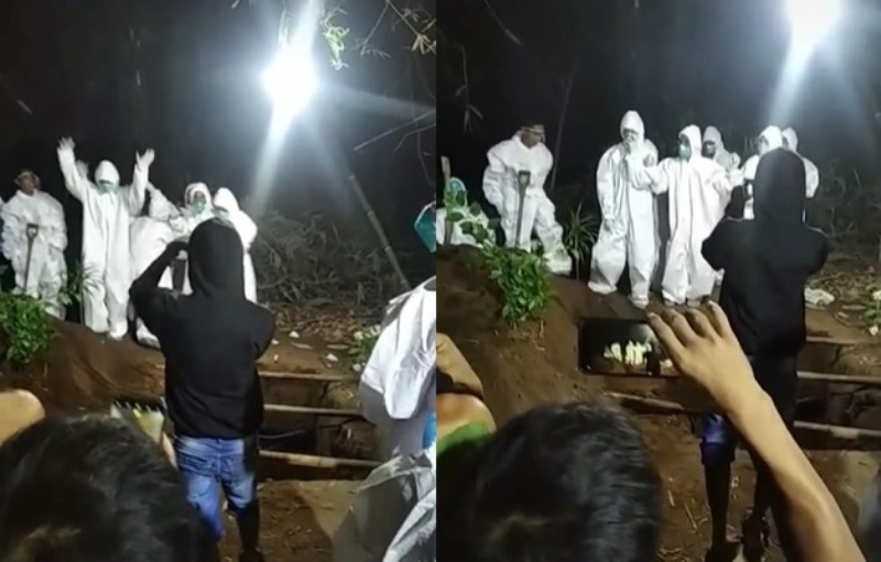 Dalam video berdurasi singkat itu terlihat tim pemakaman jenazah Covid-19 berpakaian alat pelindung diri (APD) lengkap sedang berjoget.