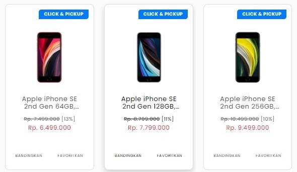 Sementara untuk model tertinggi yaitu dengan memori 256 GB mendapatkan potongan sebesar Rp1.5 juta, dimana saat pertama kali diumumkan di Indonesia iPhone SE generasi kedua varian memori 256 GB ini berbanderol Rp10.999.000 dan sekarang telah turun menjadi Rp9.499.000.